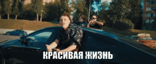 Lida from Chillsquad in a car, celebrating 'Beautiful Life' with friends, featuring Russian text.