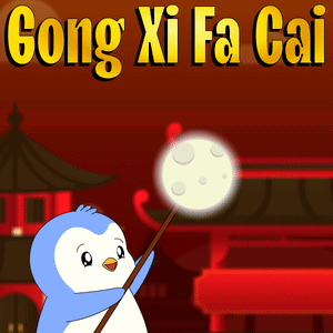A cute penguin and a friendly red dragon celebrate Chinese New Year with "Gong Xi Fa Cai" text.