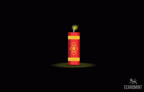 A vibrant red and yellow firecracker sparks, celebrating Chinese New Year.