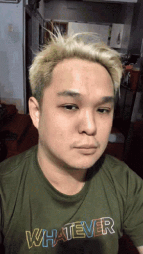 Chinoweird, with blonde hair and a green 'WHATEVER' shirt, looks visibly shocked and surprised.