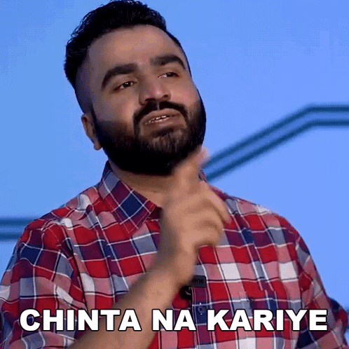Bhavin 'Hellranger' Kotwani points and says 'Chinta Na Kariye' (Don't worry) in a plaid shirt.