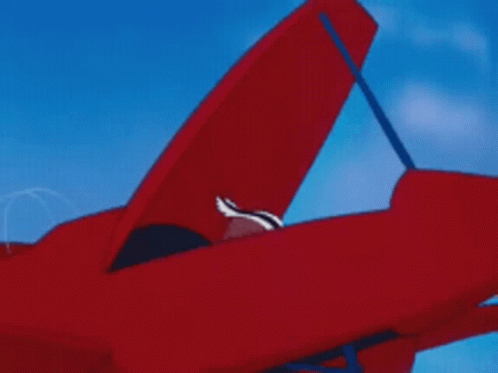 Chip, from Chip N Dale, is seen in a red biplane, attempting to fix its engine with a piston.
