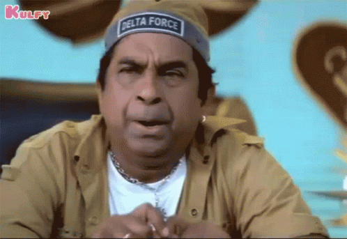 Brahmanandam, wearing a 'Delta Force' hat, shows a frustrated and angry expression in a scene from King Movie.