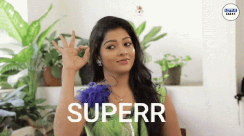 Chithu Vj, known from Pandian Stores, in a green dress, gives a thumbs up and says 'superr'.