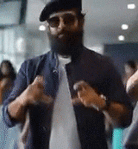 Chiyaan Vikram makes a heart gesture, embodying 'Love, Pyaar, Prema, Kadhal, Ishq' in a beret and sunglasses.