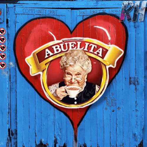 A vibrant mural featuring the iconic Abuelita chocolate logo and the phrase 'Soy Tu Nieto'.