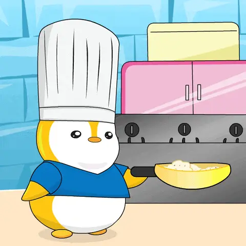 A cute pudgy penguin happily enjoys a chocolate bar with igloo designs, celebrating World Chocolate Day.