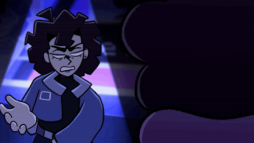 Chonny Jash animated in a scene from 'The Mind Electric,' interacting with another character with a purple headband.