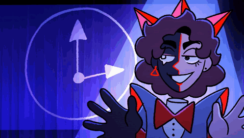Chonny Jash performs with a split-face design, red bow tie, and animated background elements.