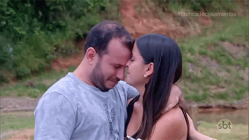 Maísa and Caio share a deeply emotional moment, hugging and crying tears of happiness during their wedding factory experience.
