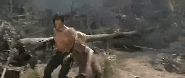 Sylvester Stallone as Rambo in a popular meme asking 'Tá Chovendo Aí?' (Is it raining there?).