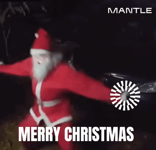 Santa Claus performs a funny dance in a Mantle ad, wishing everyone a Merry Christmas.