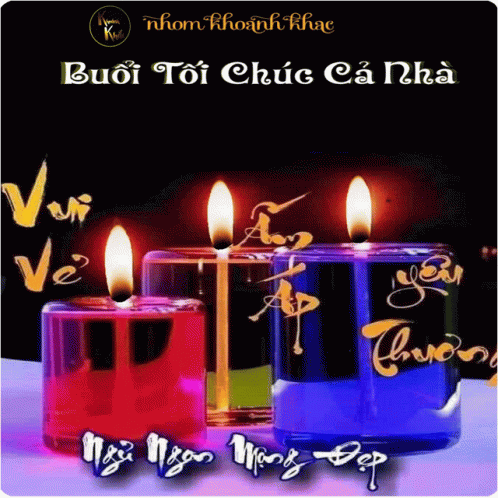 Three colorful lit candles illuminate a good evening wish for the whole family.