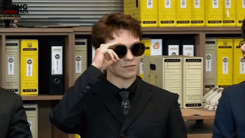 Vernon (Chwe Hansol) from Seventeen takes off his sunglasses and smiles brightly during Going Seventeen.