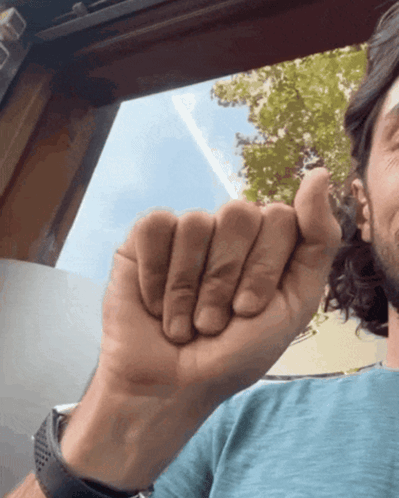 Luca Gervasi makes a Ciao Ciaone gesture, holding his fist up while smiling at the camera.