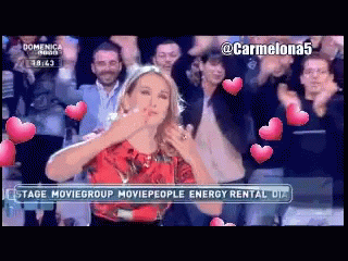 Barbara D'Urso celebrates a TV ratings victory for Canale 5 over Rai 1 with a triumphant 'Ciaone' gesture.