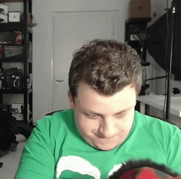 Cica Sapi, a gamer, puts on a red and black plaid YouTube trapper hat.