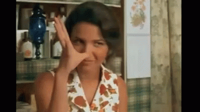 Ciclone Pirifi, a woman in a floral shirt, makes a funny face and gesture with her hand.