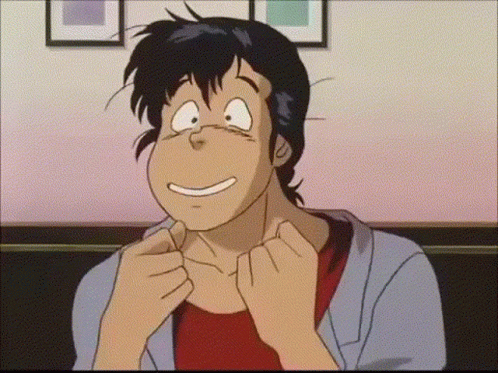 Ryo Saeba from City Hunter reacts with a comically shocked and surprised expression.