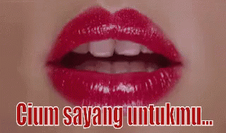 A close-up of glossy red lips blowing a kiss, with the Indonesian text 'Cium sayang untukmu...' (A loving kiss for you).
