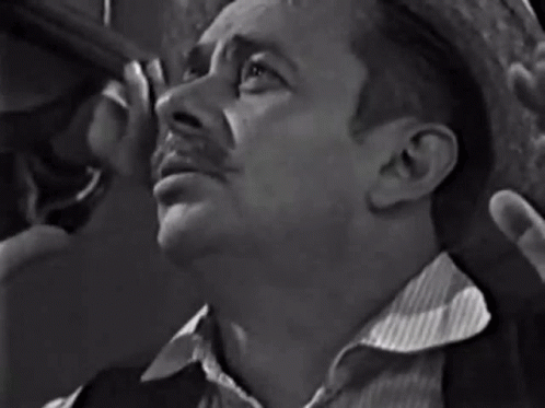 Ckalja Rrrado, a man in a striped shirt and hat, screams with his mouth open, looking upwards.