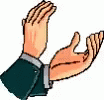 Animated hands clap enthusiastically in a simple cartoon style.