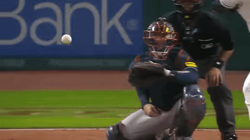 Amed Rosario of the Cleveland Guardians at bat during a baseball game, with the catcher making a play behind him.