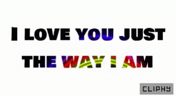 Animated text 'I LOVE YOU JUST THE WAY I AM' displayed in vibrant rainbow colors with the Cliphy logo.