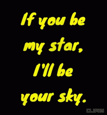 A romantic quote displayed in yellow text on a black background: 'If you be my star, I'll be your sky.'