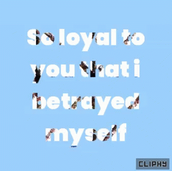 Animated text from Cliphy on a blue background reads: 'So loyal to you that I betrayed myself'.