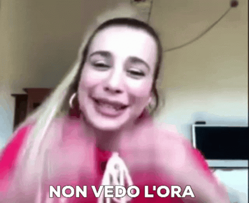 Clizia Incorvaia makes a heart shape with her hands, expressing 'Non vedo l'ora' (I can't wait).