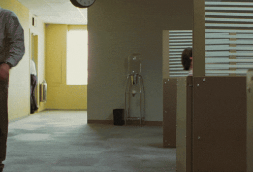 Parker Posey as Margaret in Clockwatchers, stretching dramatically in an office chair before disappearing.