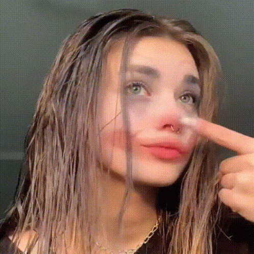 Woman with a nose ring and smudged clown makeup making a funny face, showing a playful moment.