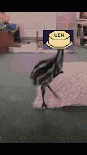 Clumsy Ghosts Wen meme featuring an emu with a 'WEN' cake on its head, interacting with a dog.