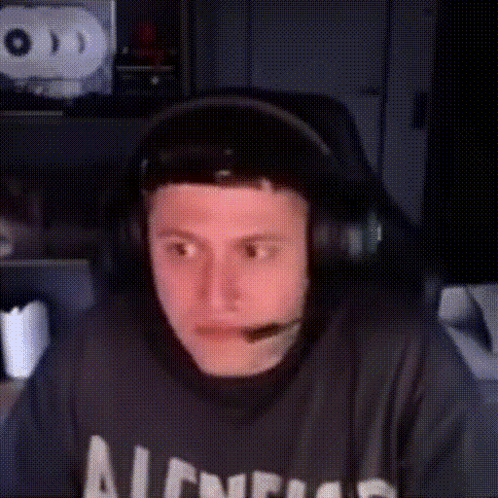 Ruslan CMH reacts with wide, surprised eyes while wearing headphones and a dark shirt.