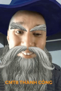 Huynhhoaanhngoc as a funny wizard with a beard and blue hat, celebrating CMT8 success.