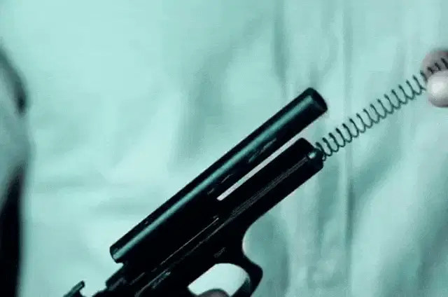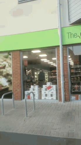 Wiktor, the Co Op Cop, stands guard inside the store entrance, visible through the glass doors.