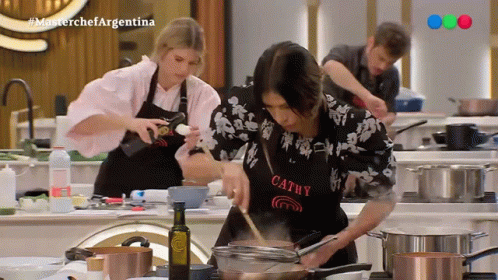 Catherine Fulop cooks on Masterchef Argentina, joined by Mery Del Cerro and Tomás Fonzi in the kitchen.