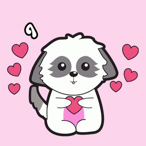 Cocoandherplato, a cute cartoon dog, holds a heart with 'I Love You' text and floating hearts.