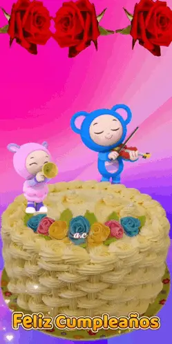 Cocomiel ladybugs celebrate a birthday with a cake and gifts, wishing 'Happy Birthday'.