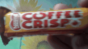 A hand holds a Nestle Coffee Crisp Double Double chocolate bar, a popular Canadian candy.