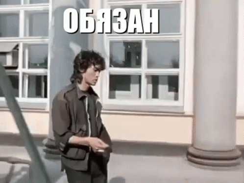 Viktor Tsoi standing with the word 'Obyazan' (Obliged) above him.