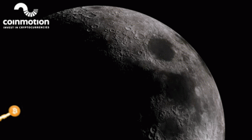 Bitcoin, powered by Coinmotion, rockets towards the moon, symbolizing its All-Time High (ATH) journey.