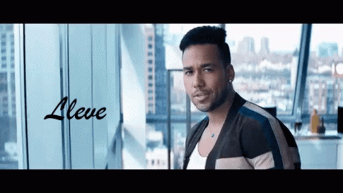 Romeo Santos performs in a modern high-rise setting, with Spanish lyrics 'Su Rica Cola' and 'Mono' displayed on screen.