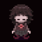 Minnatsuki from Collective Unconscious experiences an explosion, resulting in her becoming bald. A pixel art transformation.