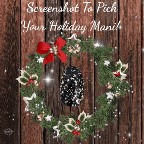 Screenshot to pick your perfect holiday manicure! Features festive nail designs within a Christmas wreath.
