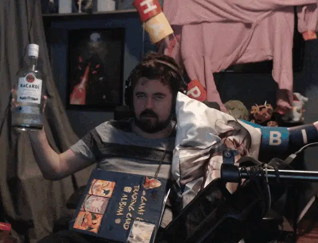 Felipe Calderón, also known as Comandante Borolas, laughing while holding a large Bacardi bottle.
