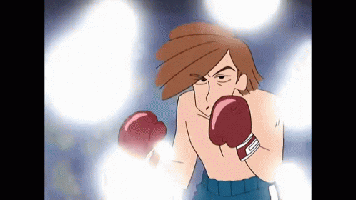 Animated boxing match with two fighters exchanging punches in the ring, showcasing dynamic action.