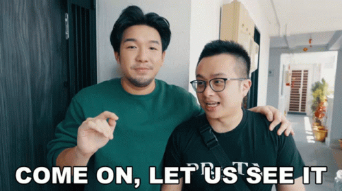 Ryan and Aiken Chia stand together, with Ryan gesturing, as the text 'COME ON, LET US SEE IT' appears.