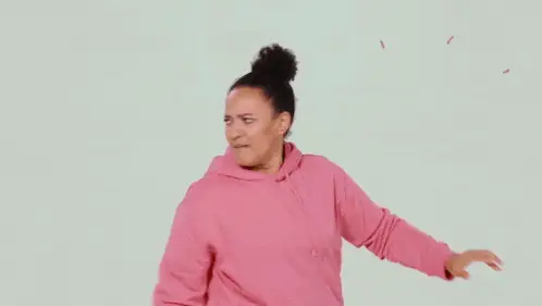 Zindzi Okenyo in a pink hoodie enthusiastically saying 'Come On!' with expressive gestures.